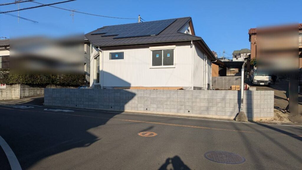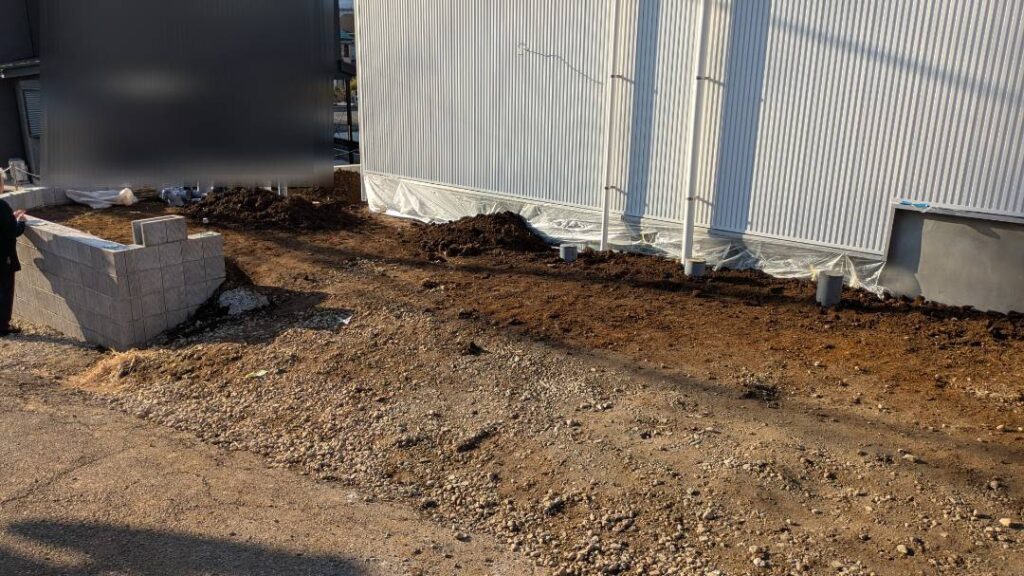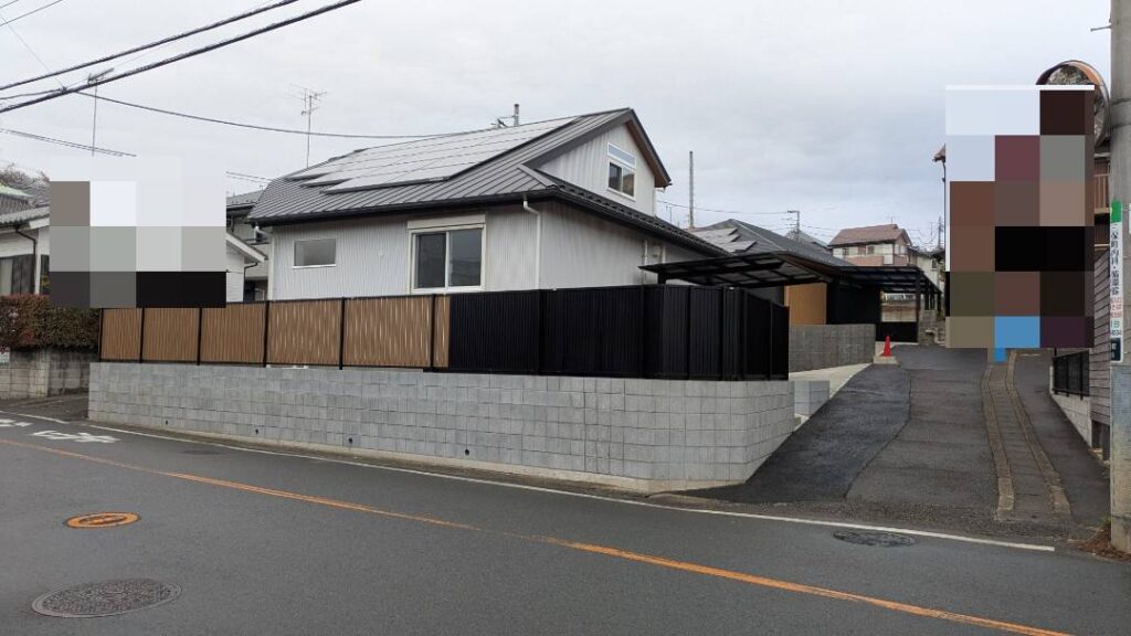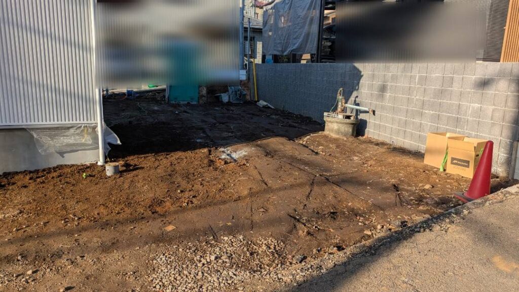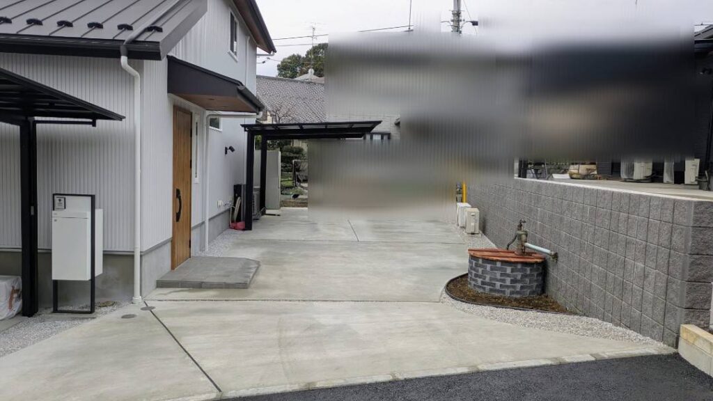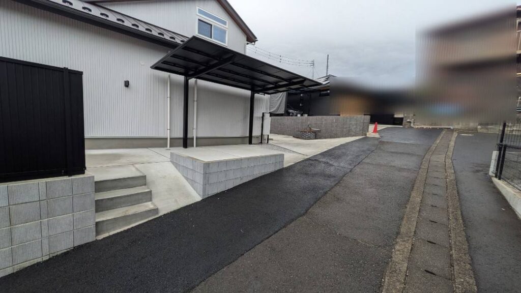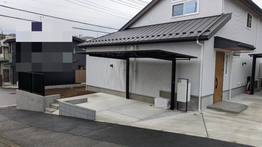 新築外構工事のご依頼をいただき、ブロック積み・フェンス設置・カーポート施工・土間・左官・レンガに加え、タイル貼りや機能門柱の設置まで、外構一式を自社職人で施工しました。